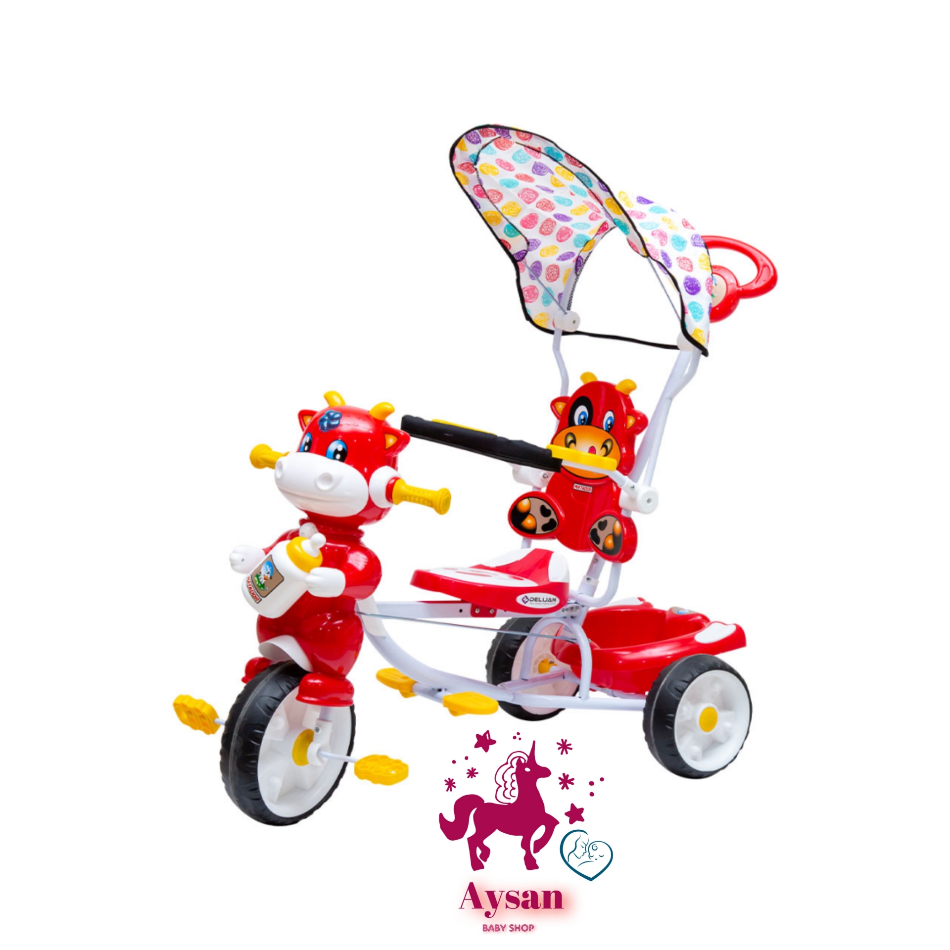 سه چرخه ماتادور دلیجان با چرخهای EVA، دسته هدایت والدین، کمربند ایمنی، گارد محافظ، سایهبان و کنسول موزیکال، انتخابی عالی برای سرگرمی و رشد کودکان 3 تا 5 سال است