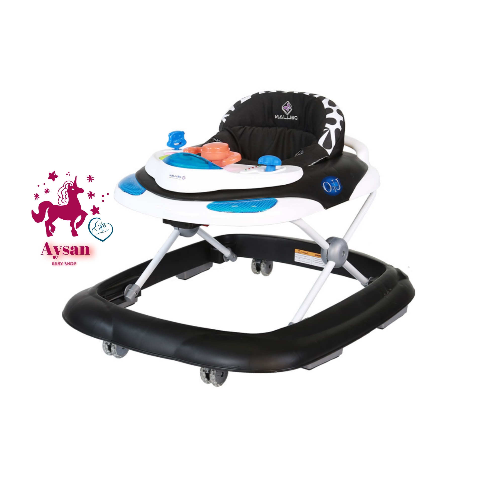 روروئک دلیجان مدل UFO با وزن 4 کیلوگرم و ابعاد جمعشده 44 × 25 × 64 سانتیمتر، دارای بدنه پلاستیکی، پایه آلومینیومی، سه حالت تنظیم ارتفاع، کنسول موزیکال چراغدار و 4 چرخ با ترمز ایمنی است. این روروئک سبک و راحت مناسب کودکان از 6 ماهگی تا 12 کیلوگرم وزن است.